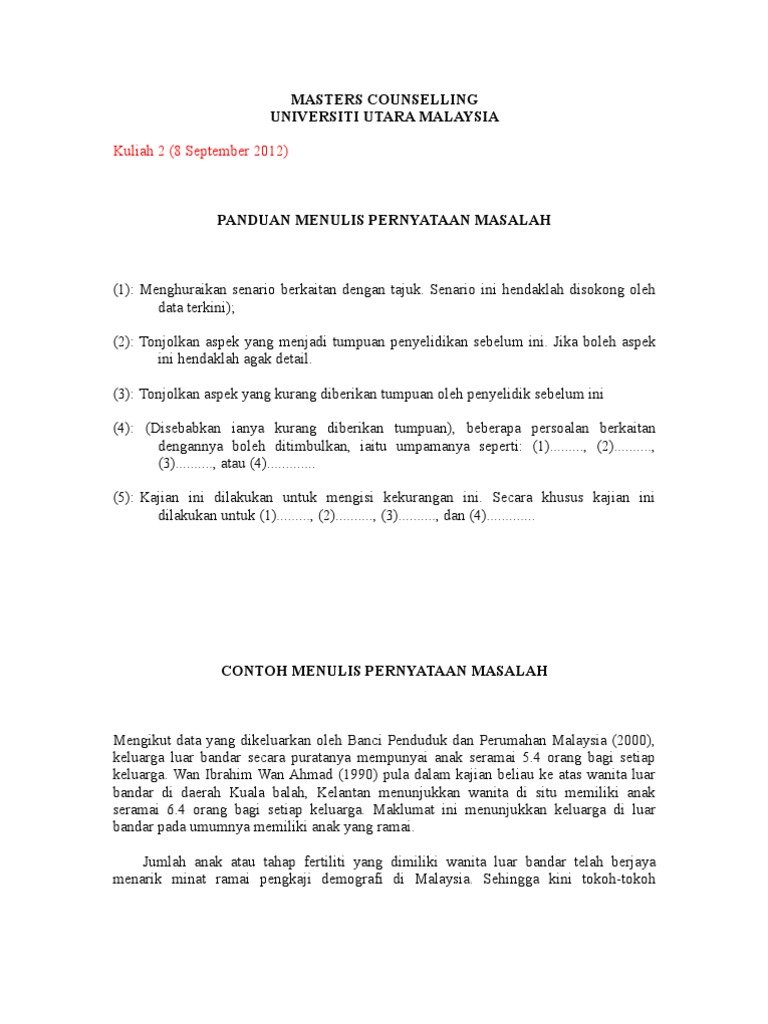 Jadi di sini terdapat 10 cara mudah untuk menulis Penyataan Masalah yang pasti berpadu. Apakah corak amalan keibubapaan dalam aspekApakah corak amalan keibubapaan dalam aspek bimbingan yang diberikan terhadap anak-anak dalam. Mengenalpasti tahap stres Perlu sediakan dua instrumen sebagai alat ukur untuk mengukur tahap beban kerja dan mengukur tahap.